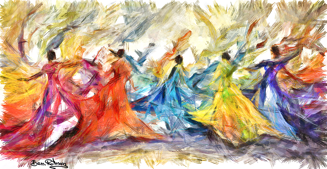 שמחה וריקודים, ציור שמן בעירבובי אבסטרקט,