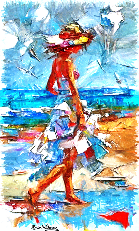 ציור שמן, אישה הולכתכנגד הרוח ,